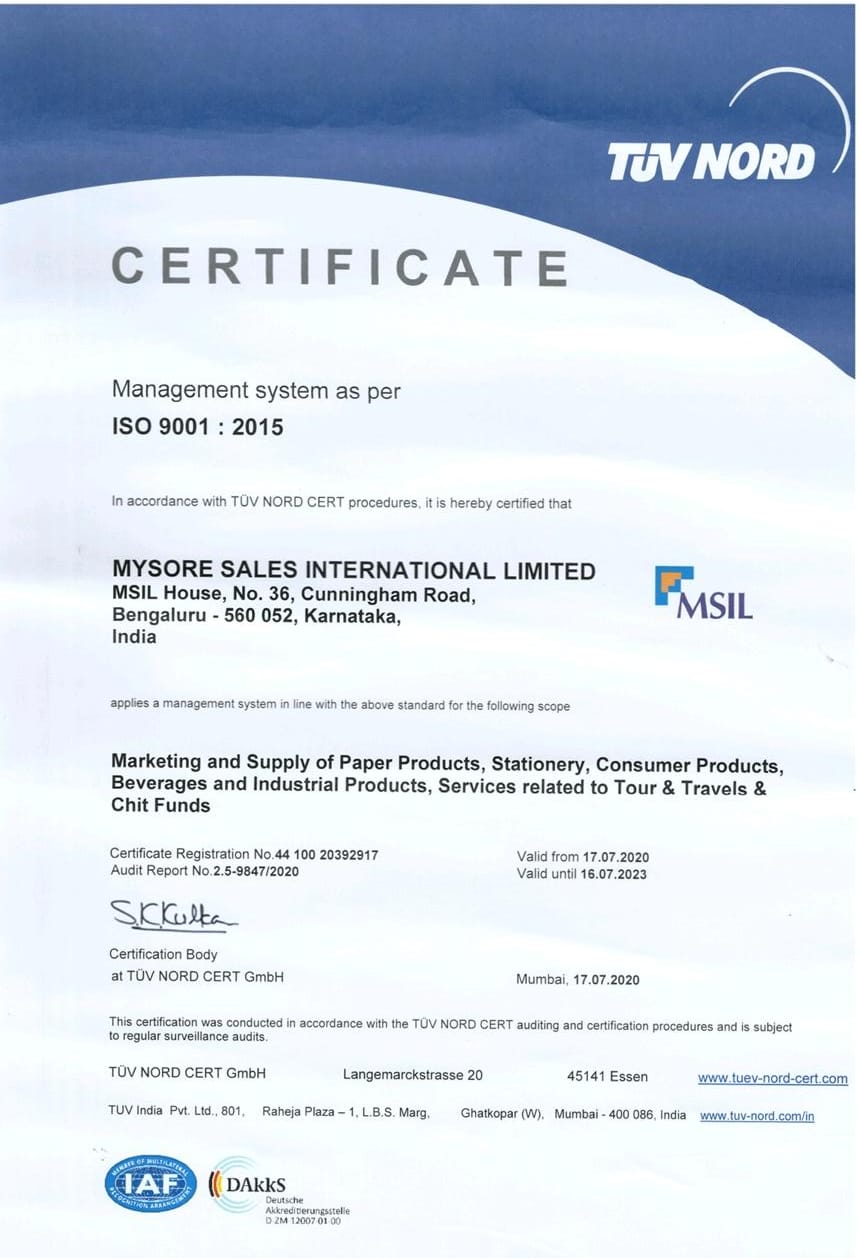 Mysore Sales International Ltd., popularly known as MSIL is a premier Govt. of Karnataka organization involved in marketing of various products and services. Established in the year 1966 as a centralized marketing unit to fulfill the marketing needs of Govt. of Karnataka, MSIL today is a vibrant, multi-product, multi-dimensional marketing organization which is reckoned among best public sector organizations in the country.