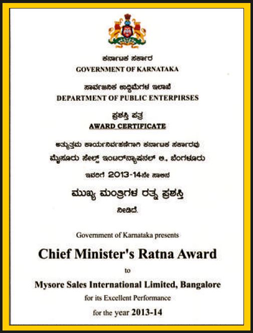 Presented with Chief Minister's Ratna Award for its excellent performance during the FY 2013-2014